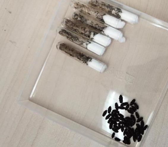 圖為花絨寄甲的幼蟲和成蟲。他們是害蟲天牛的天敵,科學繁殖天敵,可以做到生態護林 新華社記者王曉潔 攝