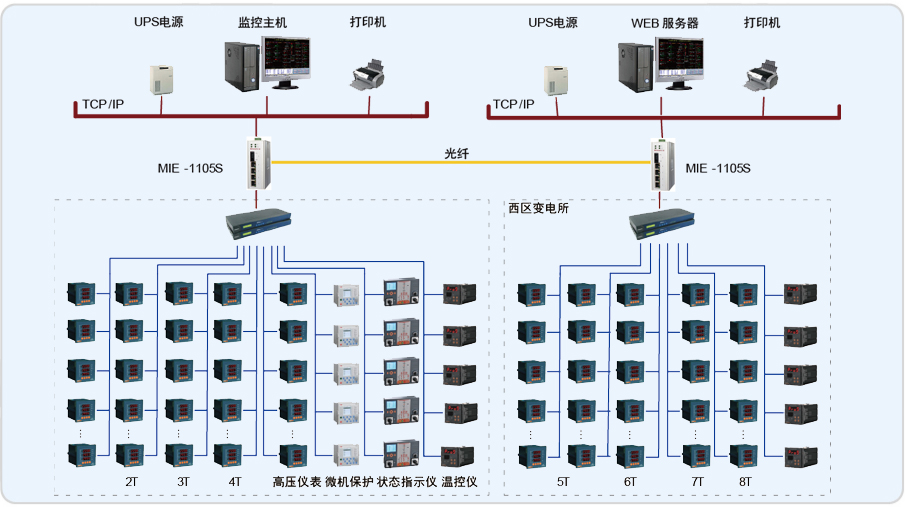 該項目監(jiān)控系統(tǒng)主要實現(xiàn)吳中商務(wù)中心兩個地下變電所(東區(qū)變電所和西區(qū)變電所)的10/0.4kV配電系統(tǒng)進行用電監(jiān)控與電能管理;監(jiān)控范圍為東區(qū)變電所的T1、T2、T3、T4變壓器的低壓進線柜、聯(lián)絡(luò)柜、饋線柜及高壓側(cè)儀表和西區(qū)變電所的T5、T6、T7、T8變壓器的低壓進線柜、聯(lián)絡(luò)柜、饋線柜儀表進行遠程實時監(jiān)控和電能管理。