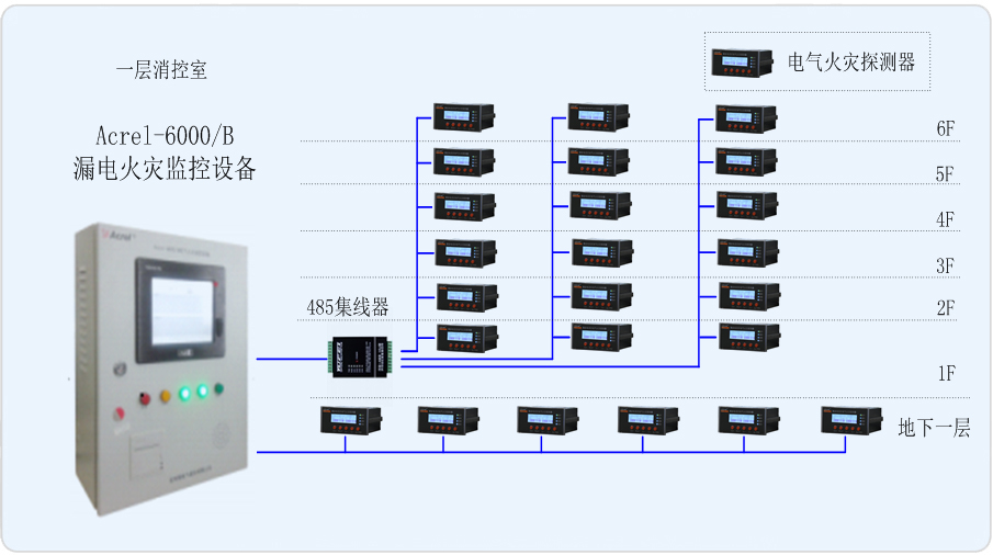本項目地上六層,地下一層。現(xiàn)需對整個紅星美凱龍家居生活廣場重要用電回路進(jìn)行監(jiān)控。安科瑞電氣股份有限公司為本項目設(shè)計一套Acrel-6000/B漏電火災(zāi)監(jiān)控系統(tǒng),并在重要進(jìn)線回路安裝電氣火災(zāi)探測器ARCM200,由此來實時監(jiān)測變電所內(nèi)重要回路的漏電流,以確保變電所配電系統(tǒng)的電氣安全。