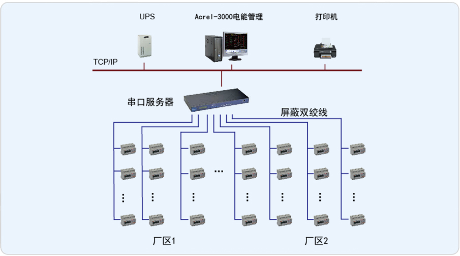 安科瑞電氣股份有限公司于2013年8月承接中國石油天然氣股份有限公司西南油氣田公司川西北氣礦江油輕烴廠電能管理系統的設計與實施,重要回路測量裝置分散安裝在整個廠區內,選用安科瑞DTSF1352/C三相電能表,采用屏蔽雙絞線直接接至數據采集器,然后通過網絡將數據傳至控制中心的監控主機,保障了電能管理系統傳輸的穩定性與實時性。系統實現了電力參數實時遙測、電能計量、電能報表等功能,做到集中管理、集中控制,省去了值班人員現場抄表的煩瑣,具有投資少、簡單實用、便于智能管理等優點。