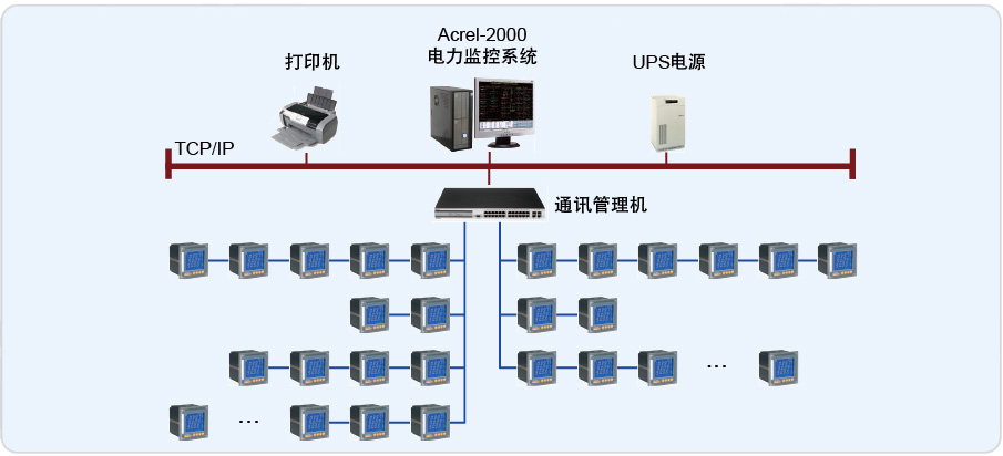 2、電能管理功能:實(shí)現(xiàn)電能的分級(jí)管理理念,即總表讀數(shù)應(yīng)與供電局收費(fèi)表讀數(shù)一致,各分表用電凈值和與總表一致等,在界面上直觀體現(xiàn);完成對(duì)各回路的電能集抄功能,并自動(dòng)生成符合客戶(hù)管理需求的收費(fèi)報(bào)表,所有報(bào)表和圖表支持查詢(xún)打印功能;
