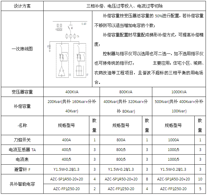 應(yīng)用于0.4kV、50Hz低壓配電系統(tǒng)。