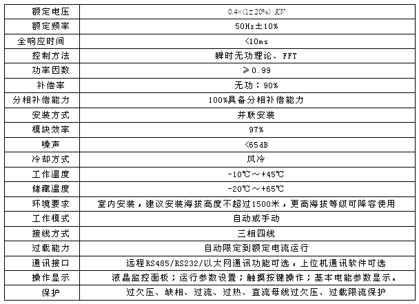 技術(shù)參數(shù):無功補償容量250kvar,諧波補償電流125A