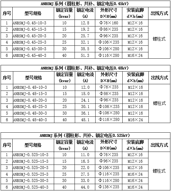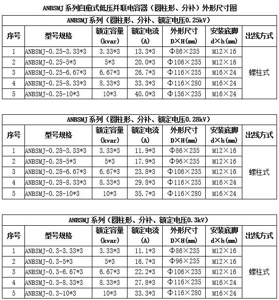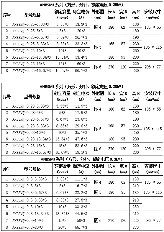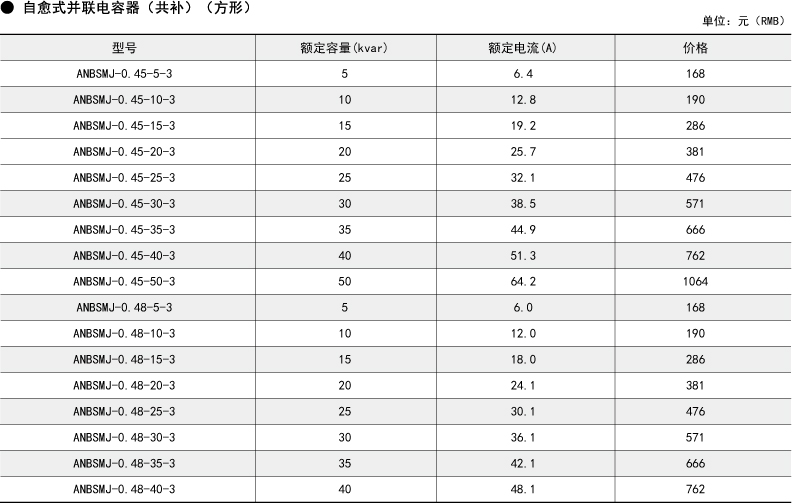 自愈式低壓并聯(lián)電容器主要使用在工頻系統(tǒng)中,用于提高電力系統(tǒng)的功率因數(shù),改善電力系統(tǒng)的電能質量,提高供電系統(tǒng)的可靠性。應用于0.4kV、50Hz低壓配電系統(tǒng)。具體型號:ANBSBJ-0.45-20-3技...