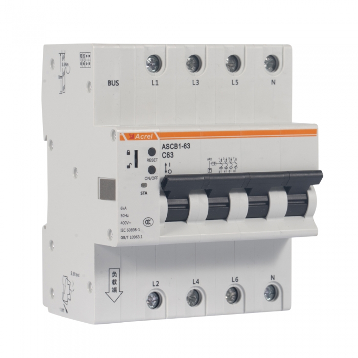 ASCB1系列智能微型斷路器(以下簡稱智能微型斷路器)應(yīng)用于戶內(nèi)建筑物及類似場所的工業(yè)、商業(yè)、民用建筑及基礎(chǔ)設(shè)施等領(lǐng)域低壓終端配電網(wǎng)絡(luò)。智能微型斷路器配合智能網(wǎng)關(guān)使用,對用電線路的關(guān)鍵電氣參數(shù),如電壓、電流、功率、溫度、漏電、能耗等進行實時監(jiān)測,具有遠程操控、異常預(yù)警、事故跳閘告警、電能計量統(tǒng)計、故障定位等功能。本系列產(chǎn)品可選單極、2極、3極、4極。