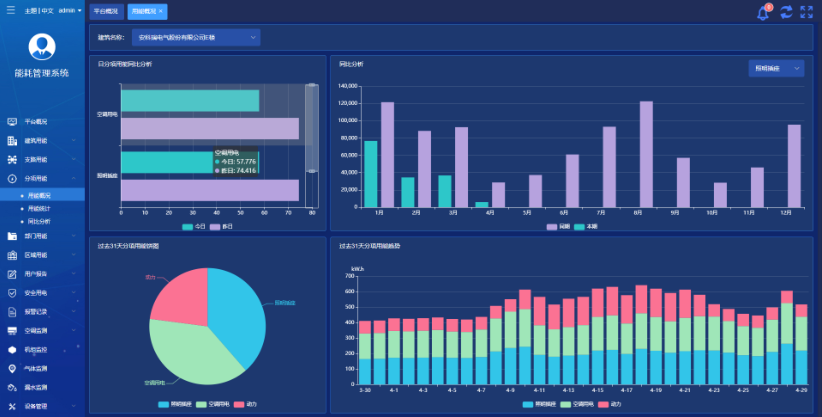 提供能耗分析報告功能,從多個維度統計分析用戶能耗使用情況。報告可以提供同環比分析、復費率電量和電費分析、能耗排名分析、報警情況統計等功能。