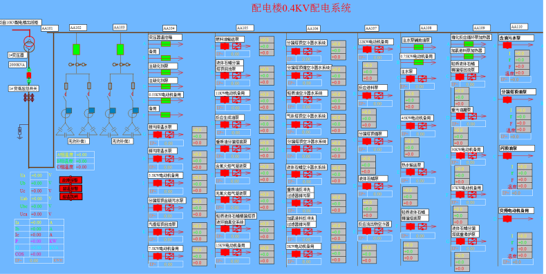 直觀顯示配電網的運行狀態,實時監測各回路電參數信息,動態監視各配電回路有關故障、告警等信號。