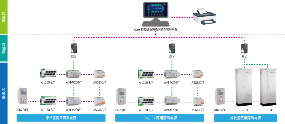 適用于醫(yī)院的手術(shù)室、各類重癥監(jiān)護室、搶救室、血透中心、內(nèi)窺鏡室及造影室等醫(yī)療2類場所的醫(yī)用隔離電源系統(tǒng)的遠程監(jiān)控及自動化管理。